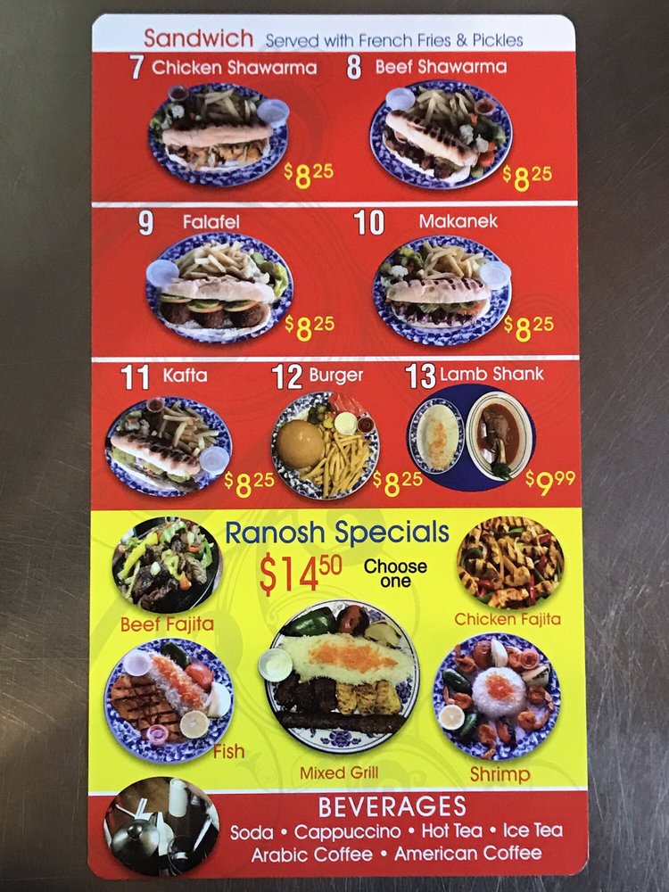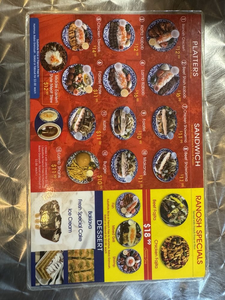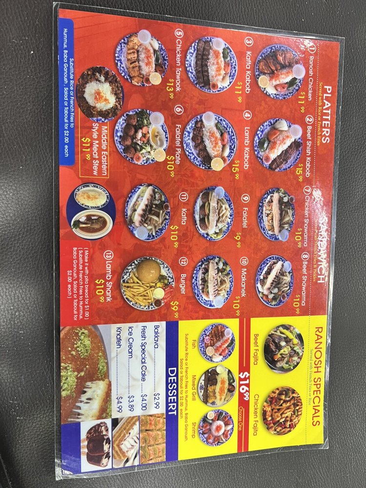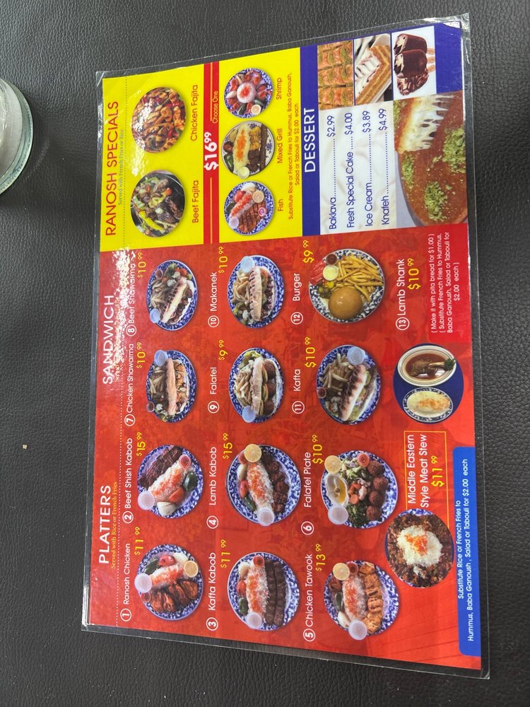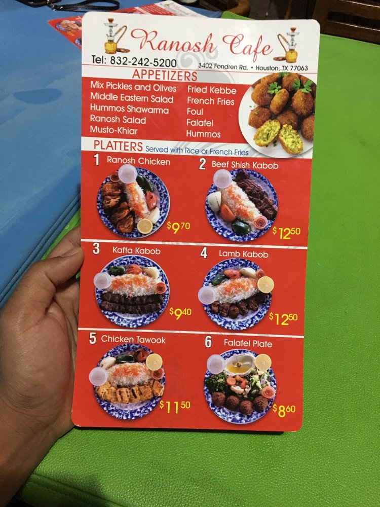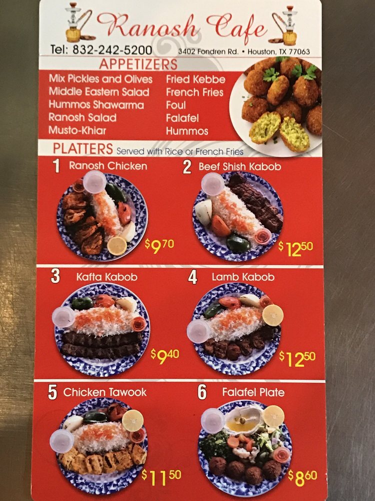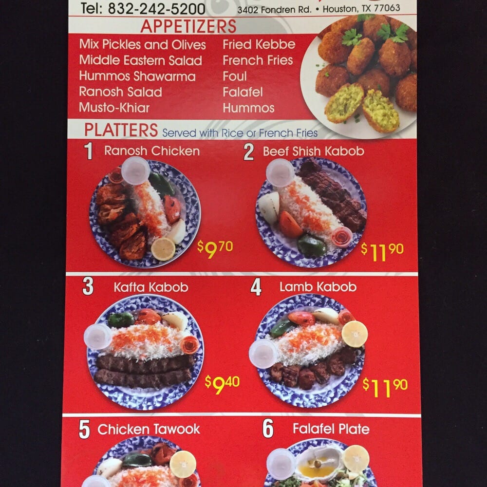 Located in Houston, TX, Ranosh is a Middle Eastern Hookah Bar known for its vibrant atmosphere and delicious food. The menu offers a variety of options, from flavorful chicken shawarma pitas to mouth-watering fries. Customers rave about the efficient service and affordable prices, making it a popular spot for friends and families alike. The outdoor patio features a waterfall and playground, creating a unique dining experience. The hookah menu adds to the casual ambiance, perfect for relaxing with friends. The standout dish, foul, is highly recommended by customers for its incredible taste. Ranosh is not just a restaurant; it's a place to unwind, enjoy good food, and create lasting memories. With its welcoming staff and diverse menu, Ranosh is a must-visit destination for those seeking a memorable dining experience.